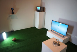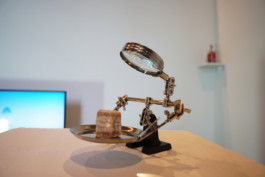 3d animation, sound, windows XP aquarium screensaver, IBM ThinkPad, helping third hand magnifier, rock salt, microscope, algae, salt water, electric wire cable, SAD lamp, rock, artificial grass. 2020